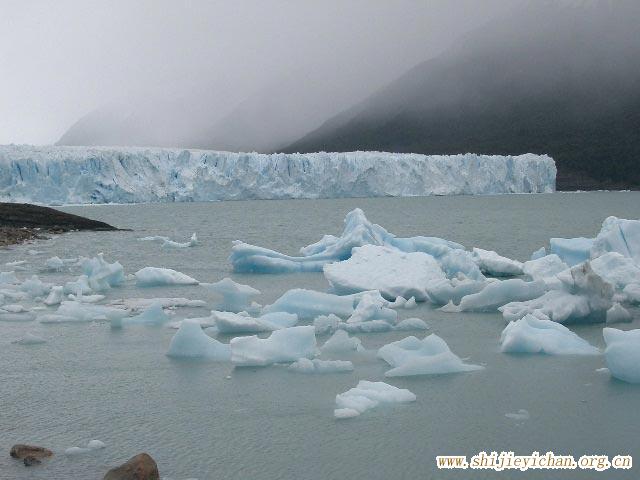 冰川國家公園是一個奇特而美麗的自然風(fēng)景區(qū)。有著崎嶇高聳的山脈和許多冰湖,其中包括一百英里長的阿根廷湖。在湖的遠(yuǎn)端三條冰河匯合處,乳灰色的冰水傾泄而下,象小圓屋頂一樣巨大的流冰帶著雷鳴般的轟響沖入湖中。