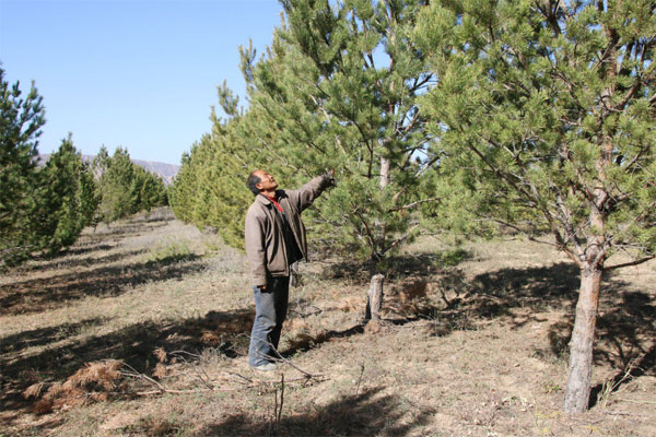 由于山上不能直接育樹(shù)苗,齊軍祥每年都要在自家耕地里先育苗,再將育好的苗移栽到山上,而那些種不完的樹(shù)苗就對(duì)外銷售,獲取一些收入。2004年,齊軍祥已經(jīng)培育了30多畝松樹(shù)和柏樹(shù)樹(shù)苗。當(dāng)年,除了用于齊山栽植和對(duì)外銷售,他家耕地里還剩下10多畝樹(shù)苗,齊軍祥任其繼續(xù)生長(zhǎng)著。