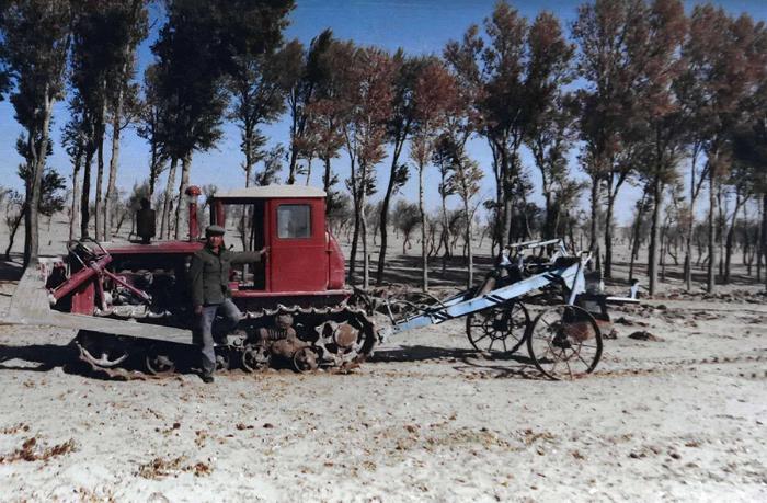 曾經的達拉特旗白土梁林場,拖拉機手在林地里留影 達拉特旗委宣傳部供圖