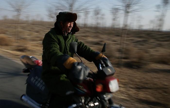 12月14日,高二云騎著摩托車前往自家林地。從上世紀80年代開始,高家人一起種樹,如今已經將五千多畝沙丘變成了森林 新京報記者 尹亞飛攝
