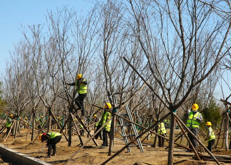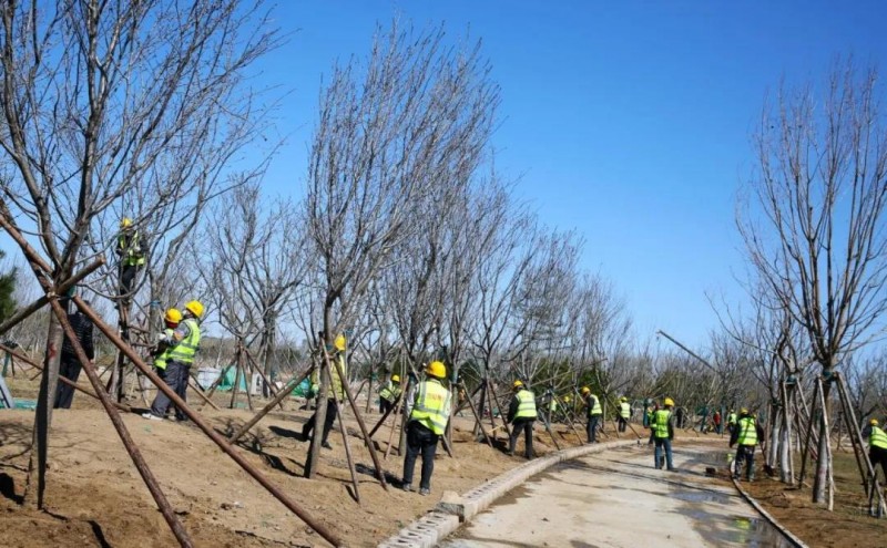 初春的北京春意盎然、生機勃勃,但比起春意更暖的是城建園林建設者們忙碌的身影。一年之計在于春,春天是植物生長的好季節,是促進綠化苗木栽植和返青養護的絕佳時機。日前,“城市綠心”的“櫻花庭院”景觀項目周邊,近500余名城建園林人正牢牢抓住春耕有利時節,夜以繼日抓緊施工,為“城市綠心”涂抹最美春色。