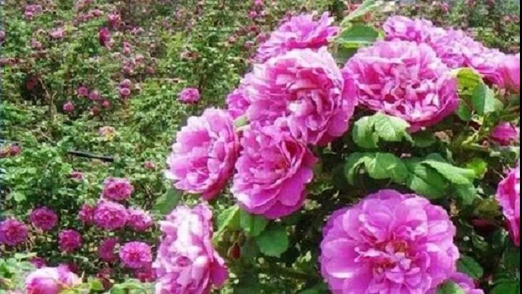 五月,久負盛名的和田玫瑰花競相綻苞怒放,火紅一片,構成花的海洋。