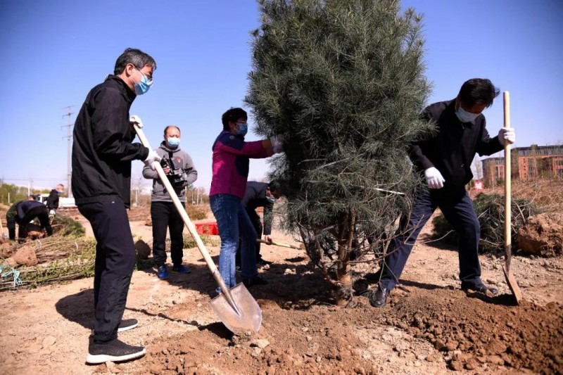 植樹現場,來自市政協機關、通州區政協機關的干部職工80余人,揮鍬鏟土、培土圍堰、提水澆灌,在近1個小時的時間里,共種植油松、白皮松、玉蘭等品種300余株,以實際行動為北京城市副中心園林綠化建設貢獻力量。