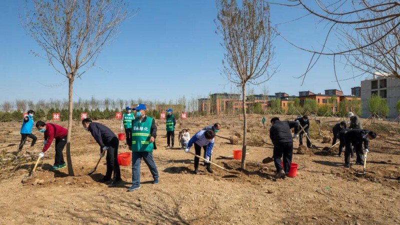 此次植樹地塊位于通州區臺湖鎮鋪外路北端,是臺湖萬畝游憩園北部的門戶區域。地塊原是工業大院,經過拆違復墾后納入到北京市百萬畝造林綠化用地,屬于通州區臺湖萬畝游憩園建設工程(四期)建設地塊。植樹活動區約56畝,種植植物以鄉土樹種為主,涉及白皮松、油松、元寶楓、絲棉木、玉蘭等苗木16個品種,共計1697株。