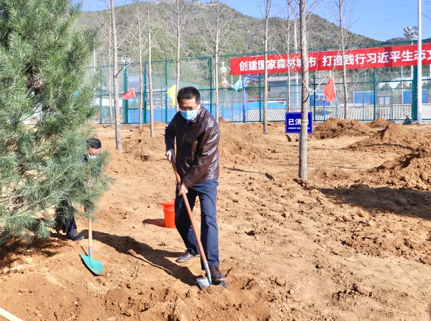 伴著和煦的春風,潘臨珠等來到植樹地點,與參加活動的社會各界代表一起,揮鍬鏟土、圍堰澆水,共同栽下白皮松、銀杏、海棠、碧桃、黃櫨等樹種近300棵。