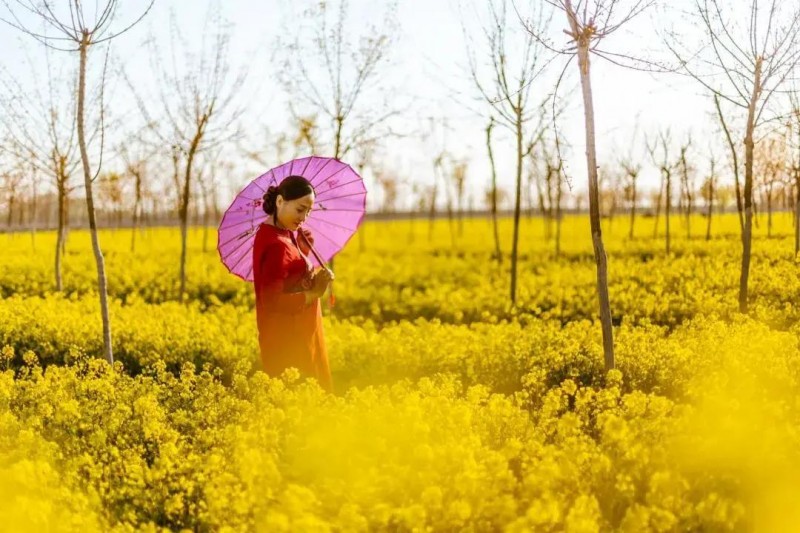 春暖四月,東風時起,雄縣鄚州鎮杜家營村,二百畝油菜花開成一片金色的海洋,引得人們紛紛前往賞花留影,成為知名打卡地。