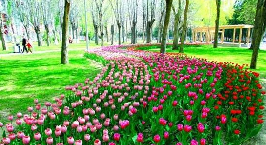 公園里交織在一起的各色郁金香更是爭奇斗艷