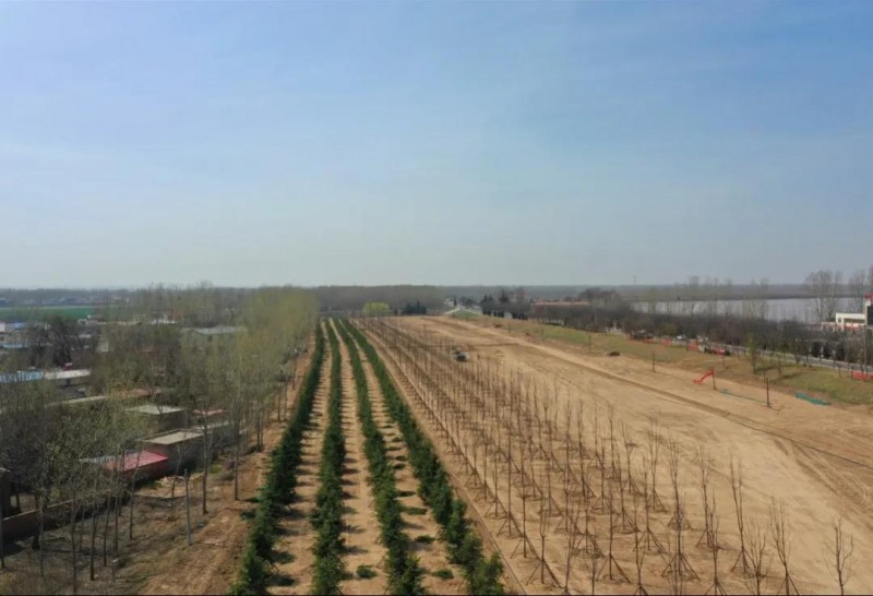 開封黃河生態廊道示范帶項目位于黃河大堤南側,長13.5km、寬110m,西起城鄉一體化示范區水稻鄉黑崗口K76+100處,東至柳園口鄉黃河大堤K90+300處,規劃范圍涉及城鄉一體化示范區、龍亭區,總規劃面積1.5平方公里,是開封市極具標志性的文化帶和重要的生態走廊,也是開封市文化、休閑、旅游設施的重要補充。當前,棕櫚股份通過設計施工一體化,結合開封實際,以“謀求黃河的高質量發展,讓黃河成為造福人民的幸福河”為規劃目標,搶抓綠化的黃金時間,助力八朝古都開封加快建設沿黃生態廊道、促進黃河流域生態保護。