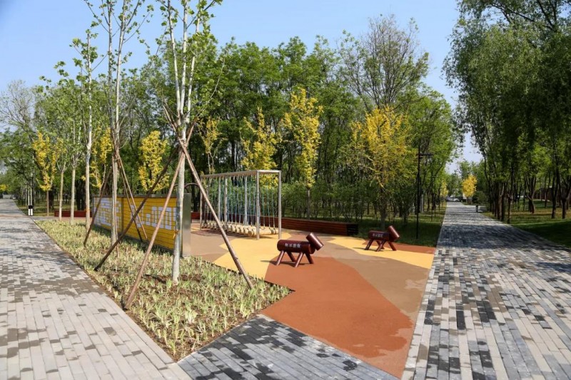 據朝陽區太陽宮鄉黨委副書記陳鵬介紹,壩河常慶花園位于朝陽區壩河、太陽宮北街和比如世界購物中心三角地帶,總面積5.17公頃。公園正處于一道綠隔城市公園環上,去年7月騰退后,在一片建筑荒地上經過大半年的綠化施工,建成了以“壩河文化”為特色,滿足周邊市民健身游憩的城市休閑公園。