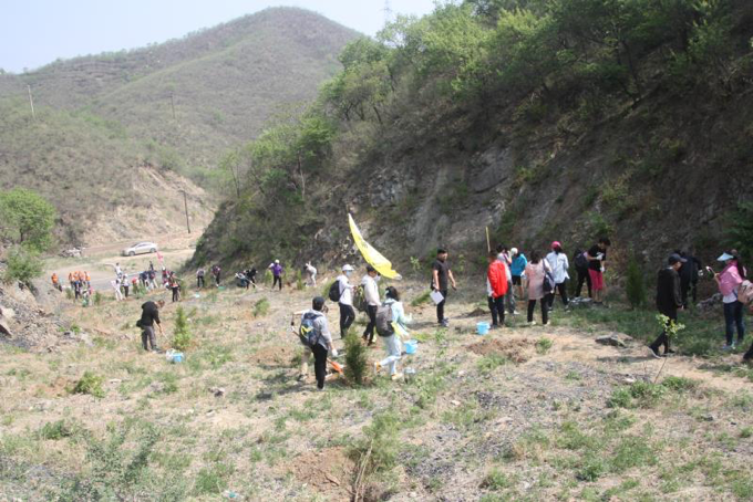 這特殊的節日里,我們一行17輛車52人頂著烈日驅車百余里地來到京西林場,五顏六色的旗幟和工作人員引導我們進入植樹場地,義務植樹盡責方式展牌讓我們知道了盡責竟然有那么多種方式另外盡責是適齡公民的義務。京西林場為我們準備好了鐵鍬、水桶等植樹工具,光水就準備了開水和涼白開讓我們倍感溫馨,細心的他們還準備了醫藥箱。