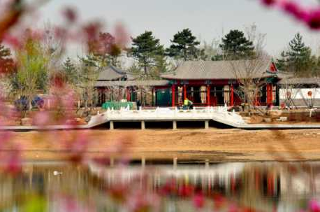眼下,亭臺樓閣等休閑設施尚在建設過程中,樹木花草、地被植物大多數都已經栽植完成。漫步園中,油松、白皮松、華山松的常綠樹郁郁蔥蔥,櫻花、杜梨、連翹、紫葉李、榆葉梅、碧桃等,金紅相映。