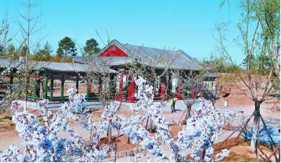櫻花庭院,怎可少了櫻花。8個品種、600多株櫻花,搭配油松、旱柳、銀杏、元寶楓等植物,圍繞著庭院錯落栽種。