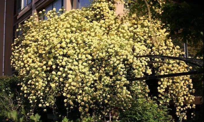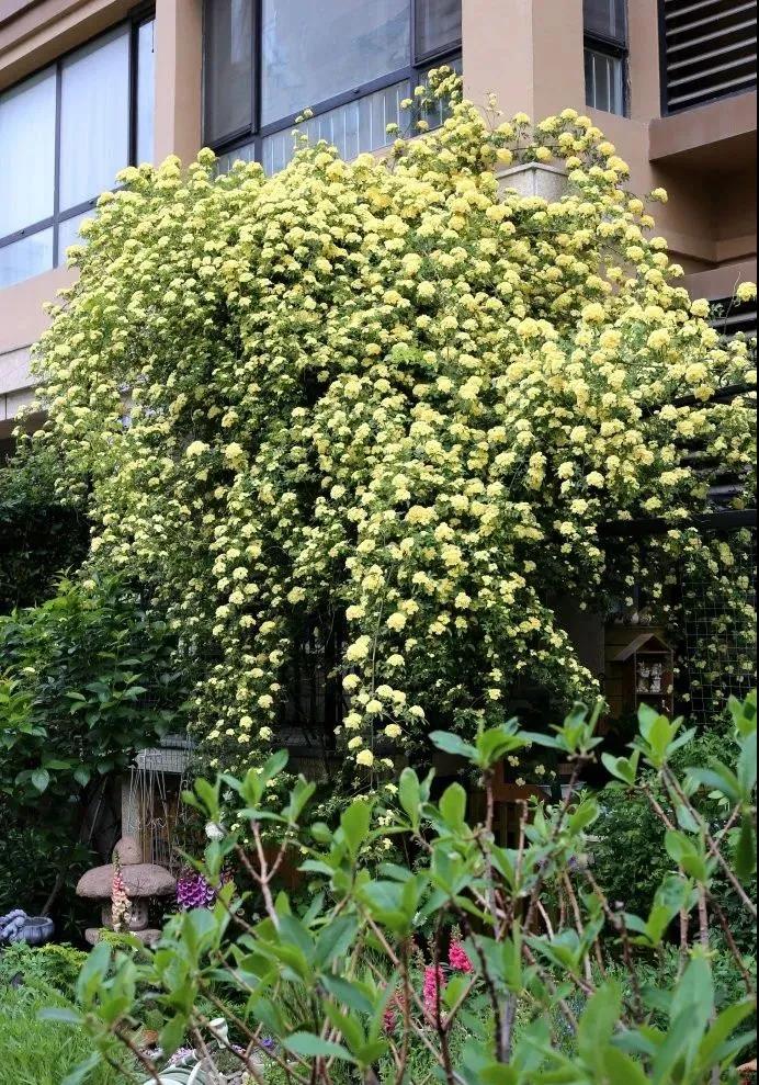 一年又一年,木香從最初的牙簽苗,成長(zhǎng)為小溪,再到現(xiàn)在的木香瀑布,巨大的傘蓋垂下來(lái),驚艷了我的花園。