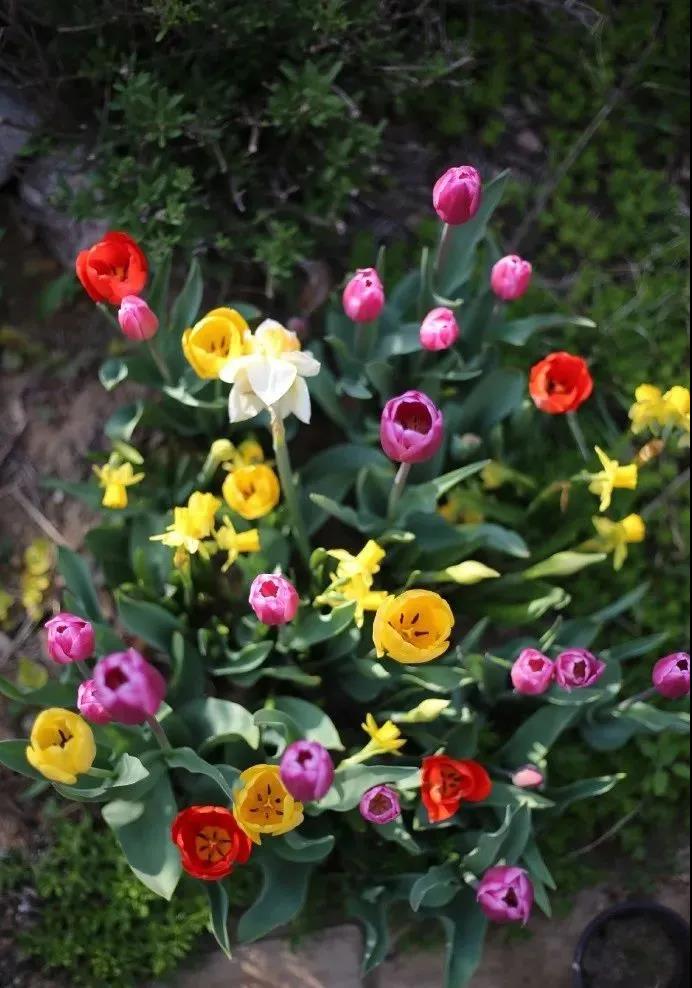 這幾個(gè)郁金香,已經(jīng)是第五年復(fù)花了吧?每年都會(huì)拍一張這個(gè)角度的,因?yàn)榭傆X(jué)得很美,年年都看不夠。