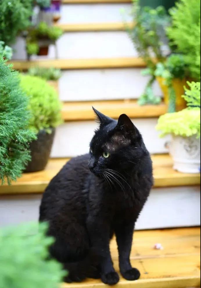 晨光中,黑貓警長(zhǎng)在巡視花園。