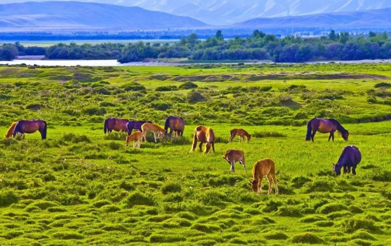 昭蘇大草原,冬長無夏,春秋相連。特克斯河橫貫草原,水資源豐富,水草豐盛,土質肥沃。6月,哈薩克牧民從“冬窩子”轉場而來,使花香鳥語之中,又多了陣陣牧歌,片片牧群,盛裝的少女,剽悍的騎手,為壯美的大草原增添了盎然生機。