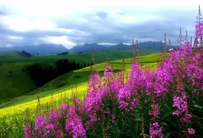 每年夏天,草原上各種野花開遍山崗草坡,紅、黃、藍、紫等五顏六色,將草原點綴得絢麗多姿。優美的草原風光與當地哈薩克族民俗風情結合在一起,展現出獨特的魅力。