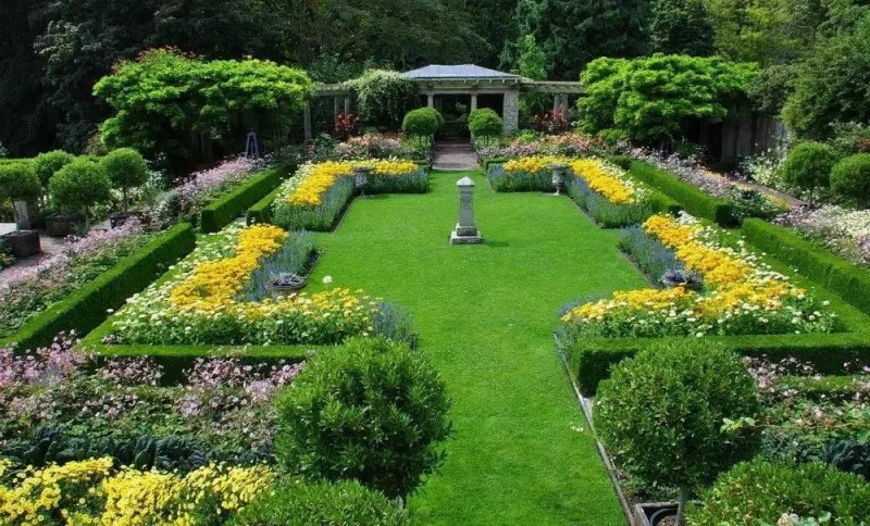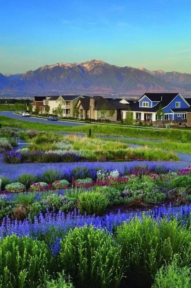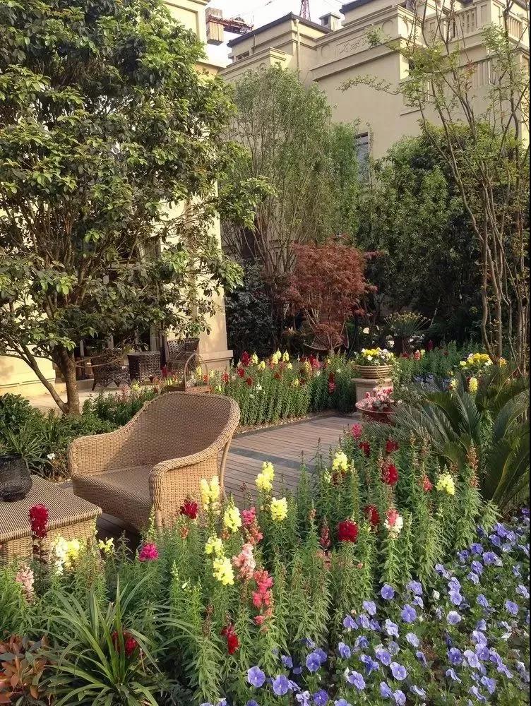 花境可用于庭院、露臺、花園、小區、公園等各處,一般花境設計要強調出花園的邊界線,一般以樹叢、綠籬、矮墻或建筑物等作為背景,再確定好常綠植物與喬木、灌木、草花的比例關系,根據各自的生長趨勢與體量大小按照如下的順序種植。