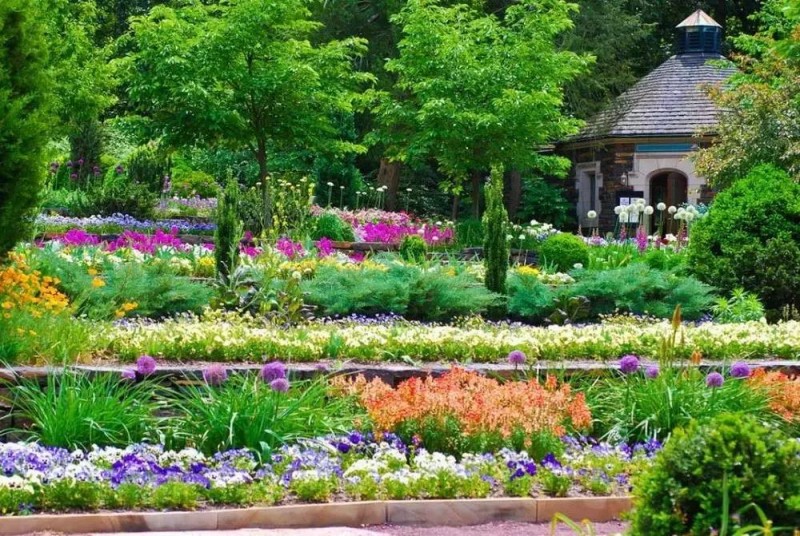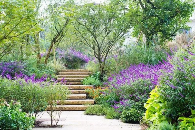 花境營造總的原則是把最高的植物種在后面,把最矮的植株種在前面或四周,但是如果盲從這個原則,則會讓景觀一覽無余,顯得索然無味,因此,可以適當地把一些高莖植物前移,使花境整體顯得層次分明而錯落有致。