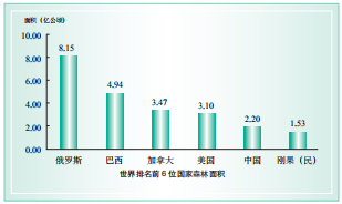 根據《2015全球森林資源評估報告》分析,中國森林面積占世界森林面積的 5.51%,居俄羅斯、巴西、加拿大、美國之后,列第五位;森林蓄積占世界森林蓄積的3.34%,居巴西、俄羅斯、美國、剛果民主共和國、加拿大之后,列第六位;人工林面積繼續位居世界首位。中國人均森林面積0.16公頃,不足世界人均森林面積的1/3;人均森林蓄積 12.35立方米,僅為世界人均森林蓄積的1/6。中國森林資源總量位居世界前列,但人均占有量少。