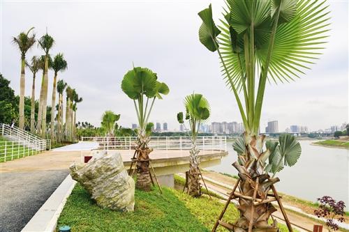 邕江南岸的五象新區(qū)一帶,沿江的景觀也在大變樣。在邕江南岸綜合整治工程萬達(dá)茂段,沿江景觀節(jié)點之一的“五象閱江”景觀,利用邕江岸邊現(xiàn)狀水塘,配置銀海棗小葉欖仁、狐尾椰、雞冠刺桐、亞熱帶植物棕櫚等植物,打造一個“邕江大水景、岸邊小水景”的漫步休閑親水駁岸空間。記者注意到,除了綠化景觀化,項目設(shè)計包含平臺、棧道、構(gòu)筑物、水景等若干景觀元素,還設(shè)計了沿江自行車道、休閑步道、親水棧道等。