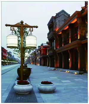 今年北京前門大街有了新變化:翠樹青石的古樸御道,鳥籠、銅鼓、冰糖葫蘆等獨具老北京特色的路燈煥然一新,五牌樓、阿里山廣場等標志性建筑新裝亮相。大街新栽植國槐170棵,盆栽花353盆,翻新鳥籠燈、撥浪鼓燈、鮮魚口燈共130余盞。此外,鮮魚口的370盞紅燈籠也全部換新,建筑樓體照明換新3000處,主街樹木夜間燈光點綴。新改造阿里山廣場噴泉兩組、主街銅缸噴泉30個,修整原有衛生間4所、新增衛生間2所,新增座椅33組。