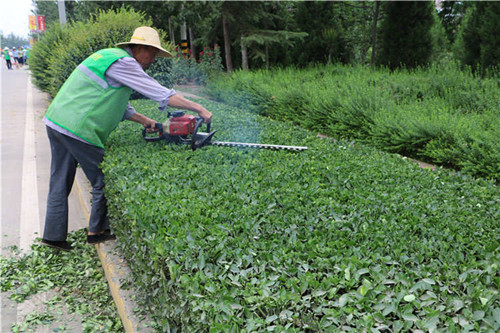 此次技術大比武主要以《綠化工國家職業標準》規定的關于園林植物修剪的知識和技能要求為基礎,以現場實際操作的方式檢驗園林綠化一線工人專業技術水平,比賽項目包括植物造型修剪和綠化帶整形修剪兩項內容。比賽現場,參賽人員神情專注,動作嫻熟,有的手持綠籬剪剪去灌木的徒長枝,有的手握專業修剪機,在綠化帶前靈活舞動,針對不同植物特性選型造型,藝術性修剪,很快一棵棵藝術性十足的女貞球、一片片整齊劃一的大葉黃楊,猶如一件件擺放在城市街頭的“藝術品”展現在大家眼前。經過評委們現場討論、評比、打分,最終評選出園林綠化“金剪刀”標兵一名。活動結束后,園林綠化專業技術人員對比賽作品進行了集中講評。