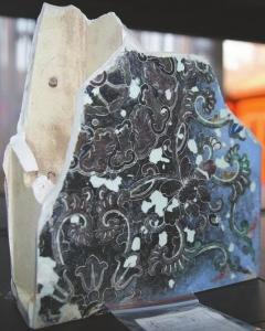 延清堂大殿粉彩地磚是一次意外收獲。在發(fā)掘中,考古隊員發(fā)現(xiàn)大殿室內(nèi)鋪地磚尚有殘存,有金磚和粉彩瓷磚兩種,金磚因過火,多數(shù)均酥裂,粉彩地磚部分表面呈黑色,也是因為過火的緣故。