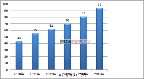 博思數據發布的《2017-2022年中國立體綠化市場分析與投資前景研究報告》,2015年我國立體綠化行業產值規模約94億元,同比2014年的81億元增長了16.05%,近幾年我國立體綠化行業產值規模如下圖所示: