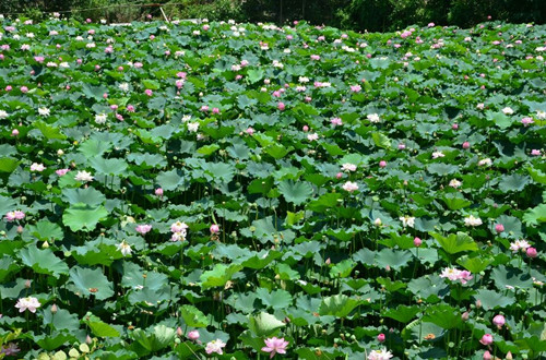 近日,筆者來到重慶市黔江區小南海十三寨,見到百畝荷花呈現在眼前,微風習習,花朵映日,荷香醉人,放眼望去,一片翠綠,生機盎然,在盛夏帶來一絲清涼,一份愜意。眾多游客前往賞荷、拍荷,陶醉其中、流連忘返。