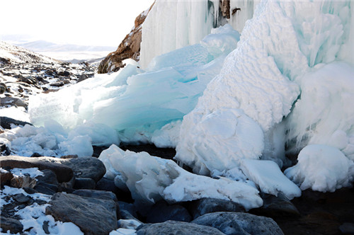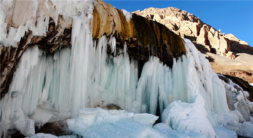 七彩冰瀑,位于青海省門源回族自治縣境內祁連山崗什卡雪峰下,在陽光照射下,折射出五彩斑斕的顏色,故稱七彩冰瀑。