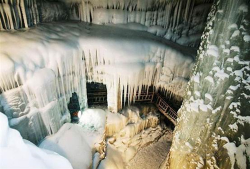 該萬年冰洞形成于新生代第四紀冰川期,距今已有300萬年歷史。冰洞深100余米,分上下五層。洞內四壁皆冰,常年不化,即使在炎熱的夏季,洞內仍讓人感到陣陣涼意。