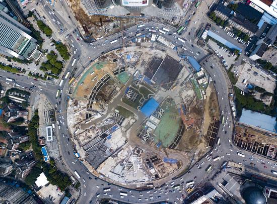 8月25日航拍的光谷廣場(chǎng)綜合體主體結(jié)構(gòu)工程。新華社記者熊琦攝