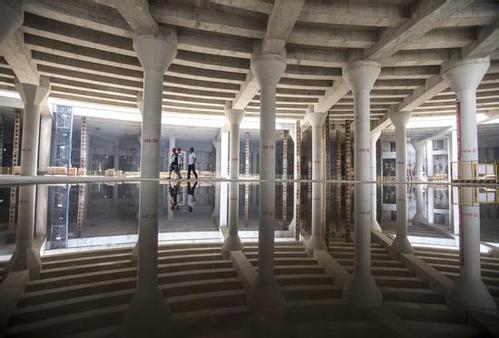 8月25日拍攝的正在建設(shè)中的武漢光谷廣場(chǎng)綜合體工程地下一層空間。新華社記者熊琦攝