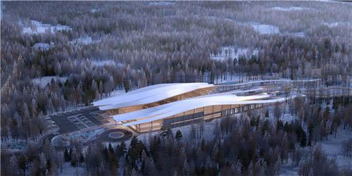 2016年喜獲“年度最具未來感建筑獎”與“年度建筑最佳效果圖獎”的長白山森林溫泉項目景觀設計,也是由杜昀主導設計。該項目位于美麗的吉林長白山,設計師以“森林中的云霧”為設計概念,通過幾組流線型的屋頂在平面中延展,以一種純凈的姿態落到場地當中,力求將云霧的意象能夠和長白山的森林、冰雪形成自然的和諧與呼應。