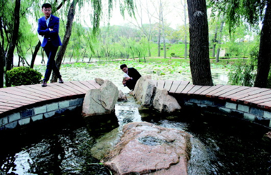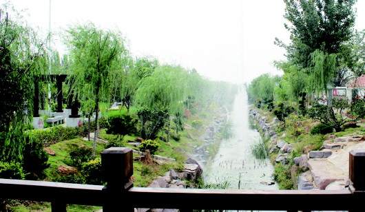 汪汪泊村在小河里建起了音樂(lè)噴泉。