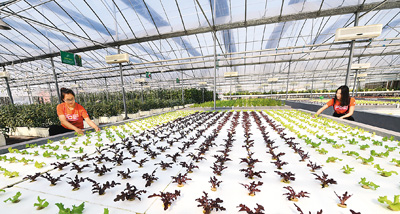 走進位于河北滄州中捷友誼農場的金太陽農業生態園,滿眼的綠意和清新的氣息撲面而來:一株株秧苗或正開花、或已掛果;鮮嫩光潔的葉片自由舒展著,上面沒有蟲洞和暗黃枯葉……在這里,蔬菜、花卉無需栽種于土壤,只需有機基質在微生物技術的作用下,就可以綠意盎然、瓜熟蒂落。