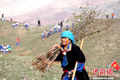 進入秋季,在青海省東部的農區,鄉鎮干部、民眾代表、學生、僧侶齊上陣,掀起了一場國土綠化“大會戰”。
