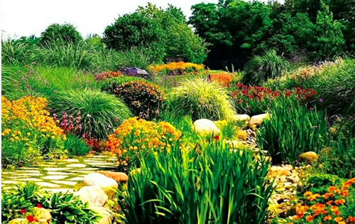 老樹廣場南側現狀空地通過地勢梳理,營造起伏的景觀地形,栽植豐富多樣的園藝植物,打造絢麗多彩帶狀的園林花鏡,結合緩坡草坪打造四季景觀變化的芳草園景點。