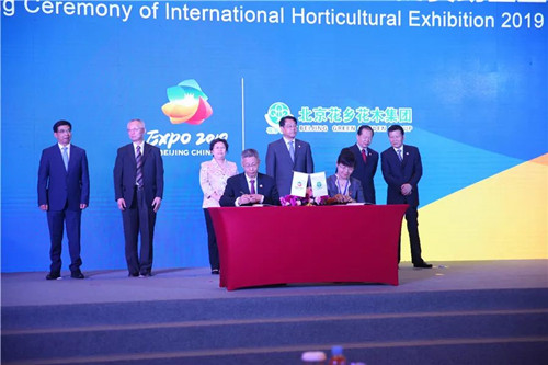 5月17日上午,2019年中國北京世界園藝博覽會第二批贊助企業簽約活動在北京飯店國際會展中心舉行。北京花鄉花木集團正式簽約成為2019年中國北京世界園藝博覽會(以下簡稱“北京世園會”)高級贊助商。北京草橋實業總公司董事長李澄清、北京花鄉花木集團董事長林巧玲代表花木集團出席簽約儀式,并現場簽約。