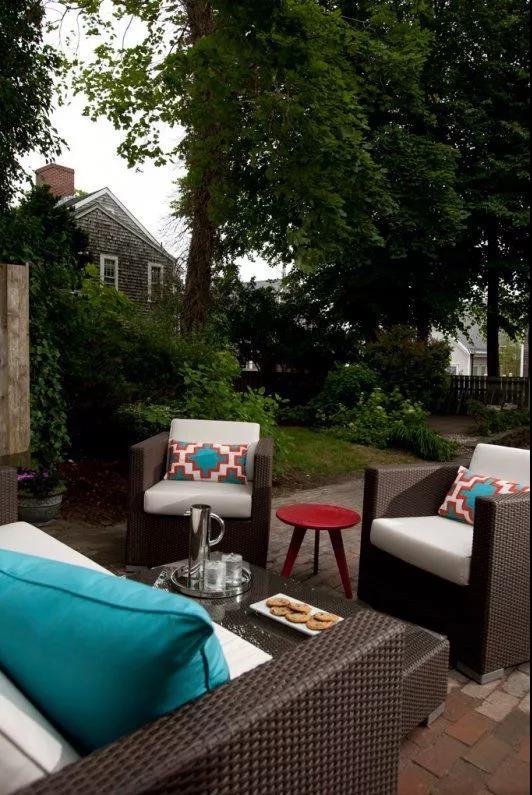 還有柔軟的地毯、不同圖案的抱枕、桌椅上的小飾品都能為你的庭院增色不少