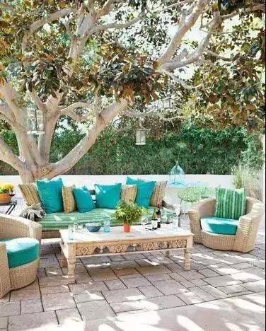 還有柔軟的地毯、不同圖案的抱枕、桌椅上的小飾品都能為你的庭院增色不少