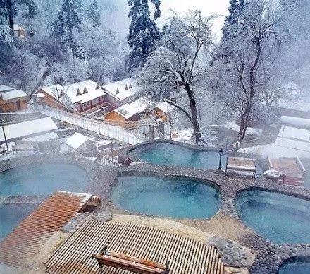 熱氣騰騰的水流擁抱著你,哪怕外面依舊是刺骨的寒冷,這樣的溫泉水卻可能模糊你的視線,讓你一時忘記冬天的溫度