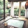 在院子溫泉旁放置一塊拙石,頗有別樣的禪意