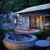 在院子溫泉旁放置一塊拙石,頗有別樣的禪意