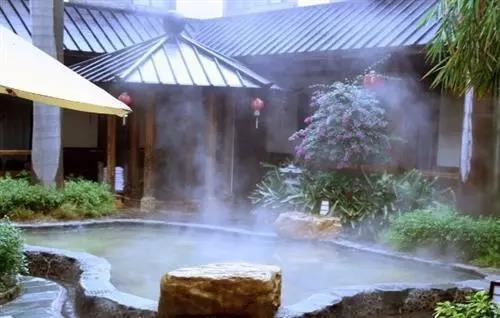 泉水緩緩流淌不息,泉水滾滾濺起層層氤氳,一條毛巾,一杯美酒,置身其中,所有疲憊頓時煙消云散