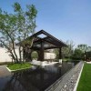 解析:項目位于蘇州相城區,地段周邊為原御窯金磚遺址及陸慕老街,基地周邊有元和塘等多重水系環繞,項目本身地段的歷史積淀和厚重感,及較好的周邊自然環境,都是設計中的必須尊重和設計發展的源點。蘇州園林是江南園林的代表和范本,在此項目中不是對蘇州園林單純的復制,而是對傳統的傳承與發展,既有對蘇州和地段的尊重與思考,同時又體現當代蘇州新中式的發展與創新。其中在示范區景觀設計中,在前場—前庭—后府—山水園的空間序列中,希望業主感受到從市—河—徑—橋—庭—府—園的層層遞進與空間體驗中,進而放下塵世的喧擾,回歸到家庭的溫馨與放松。