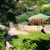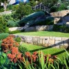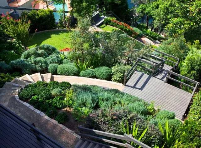 這個(gè)花園的設(shè)計(jì)是一個(gè)頗具挑戰(zhàn)性的項(xiàng)目,1600平方米的景觀在一個(gè)45度的斜坡上,土地和水的使用都受到了限制。一系列的石質(zhì)臺(tái)階和小徑沿著分層景觀臺(tái)一路延伸向岸邊。沿途植物頗為亮眼,一個(gè)混合了當(dāng)?shù)赜^賞性灌木和一些經(jīng)典海灘植物的迷你花園與自然景觀相呼應(yīng)。