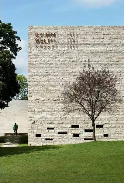 在卡塞爾溫伯格,新博物館的設(shè)計(jì)呈現(xiàn)了格林兄弟作品。它將周?chē)珗@的歷史性的和地形特點(diǎn)轉(zhuǎn)變?yōu)橐粋€(gè)連續(xù)的開(kāi)敞空間,邀請(qǐng)參觀者來(lái)探索展覽館。在格林兄弟博物館,Grimmwelt Kassel,位于風(fēng)景如畫(huà)的公園,在稱(chēng)之為溫伯格的斜坡區(qū)域,靠近卡塞爾市中心,溫和的融合入平緩的景觀。舊石階,墻的碎片,棚架,種植梯田和茂密的植被,讓公園的特殊氛圍進(jìn)一步加強(qiáng)。新的博物館在周?chē)牡匦沃衅鸱梢陨衔蓓敚虼颂峁┮粋€(gè)開(kāi)放的樓梯,引向露臺(tái),能夠俯瞰卡塞爾的景色。設(shè)計(jì)在室內(nèi)導(dǎo)致了錯(cuò)層布置。分層空間圍繞一個(gè)中心介紹大廳展覽多種重點(diǎn)學(xué)科。游客在不同氛圍體驗(yàn)場(chǎng)地,集中在德國(guó)語(yǔ)言學(xué),同時(shí)收集了格林童話(huà)。門(mén)廳有前臺(tái),一間店鋪和等候區(qū),一處長(zhǎng)空間伸展至整個(gè)建筑的深度。結(jié)束在一間日光咖啡里,卡塞爾的全景,和城市南部。鋼筋混凝土結(jié)構(gòu)有淺色天然石材,大致分成具有不同高度的路線(xiàn)。材料的選擇讓人們回想起亨舍爾豪斯,在1945年被空襲毀掉了,現(xiàn)在矗立了一間新博物館。此外,材料的選擇反映了現(xiàn)有的山,和曾經(jīng)是葡萄園下的石灰石。