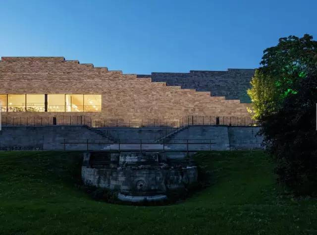 在卡塞爾溫伯格,新博物館的設(shè)計(jì)呈現(xiàn)了格林兄弟作品。它將周圍公園的歷史性的和地形特點(diǎn)轉(zhuǎn)變?yōu)橐粋€(gè)連續(xù)的開敞空間,邀請參觀者來探索展覽館。在格林兄弟博物館,Grimmwelt Kassel,位于風(fēng)景如畫的公園,在稱之為溫伯格的斜坡區(qū)域,靠近卡塞爾市中心,溫和的融合入平緩的景觀。舊石階,墻的碎片,棚架,種植梯田和茂密的植被,讓公園的特殊氛圍進(jìn)一步加強(qiáng)。新的博物館在周圍的地形中起伏,可以上屋頂,因此提供一個(gè)開放的樓梯,引向露臺,能夠俯瞰卡塞爾的景色。設(shè)計(jì)在室內(nèi)導(dǎo)致了錯(cuò)層布置。分層空間圍繞一個(gè)中心介紹大廳展覽多種重點(diǎn)學(xué)科。游客在不同氛圍體驗(yàn)場地,集中在德國語言學(xué),同時(shí)收集了格林童話。門廳有前臺,一間店鋪和等候區(qū),一處長空間伸展至整個(gè)建筑的深度。結(jié)束在一間日光咖啡里,卡塞爾的全景,和城市南部。鋼筋混凝土結(jié)構(gòu)有淺色天然石材,大致分成具有不同高度的路線。材料的選擇讓人們回想起亨舍爾豪斯,在1945年被空襲毀掉了,現(xiàn)在矗立了一間新博物館。此外,材料的選擇反映了現(xiàn)有的山,和曾經(jīng)是葡萄園下的石灰石。